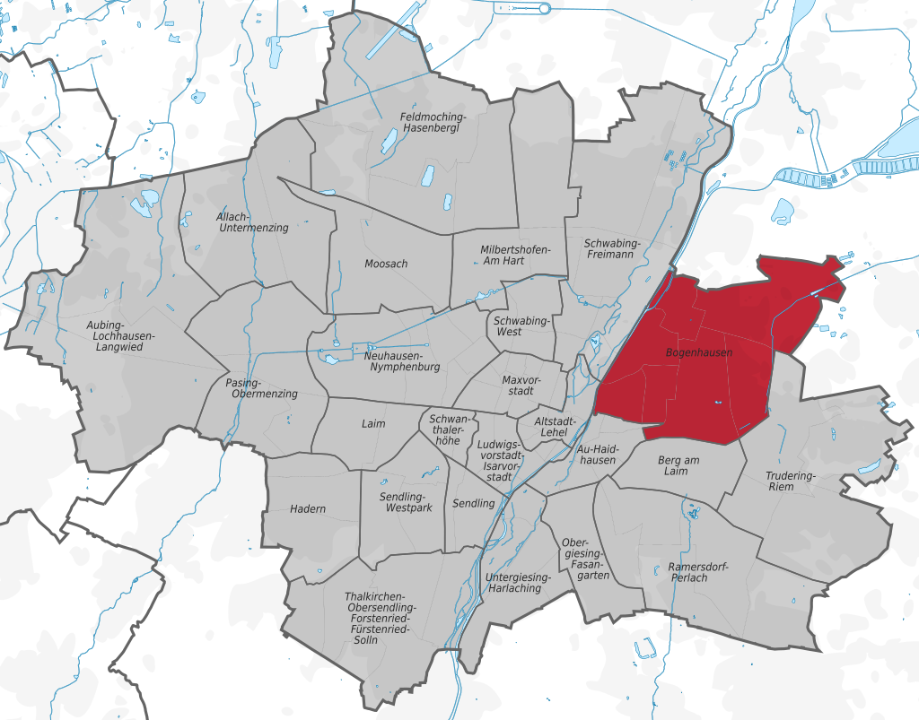 Hinter der Stadt steht die Zahl “13”. München 13 war im Jahr 1944 der Stadtbezirk Bogenhausen. Dieser Bezirk wurde bereits am 1. Januar 1892 in die Stadt München eingemeindet und ist seitdem ein nordöstlicher Stadtbezirk der Landeshauptstadt. Wo der Bezirk liegt seht ihr hier: