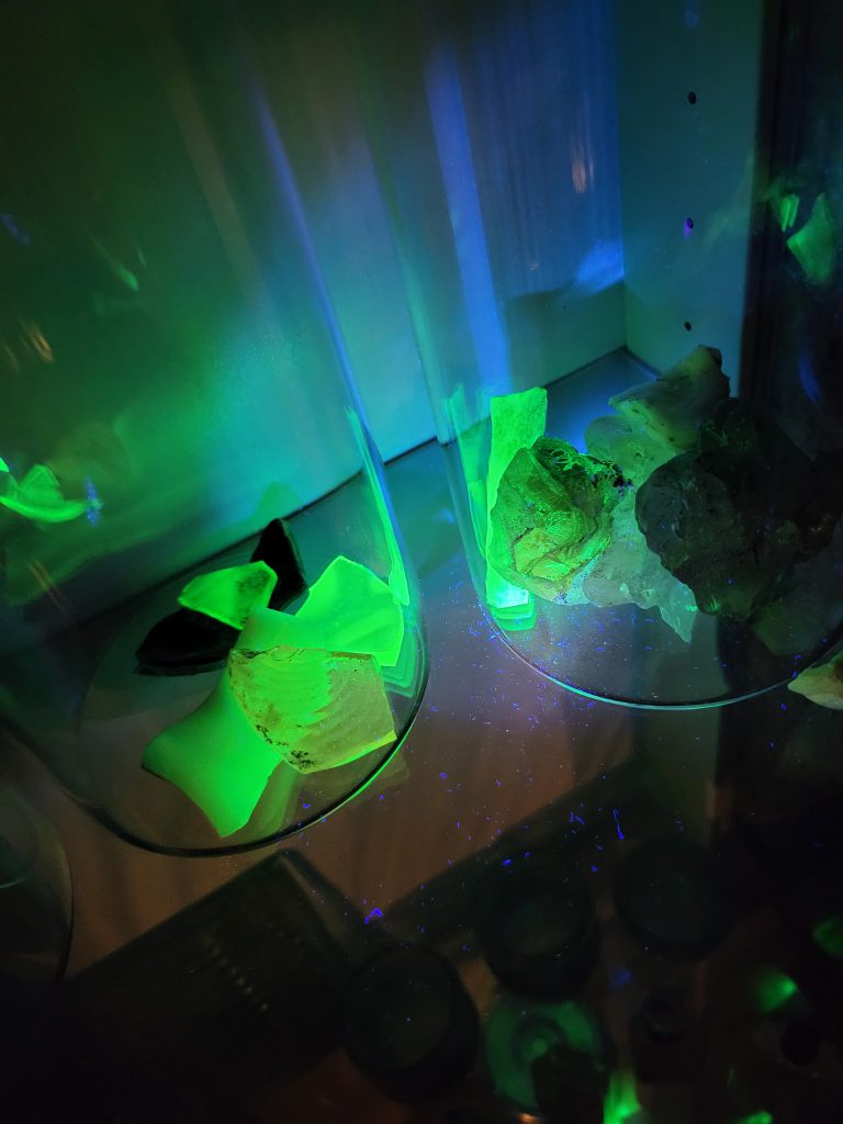Das Einzige bei dem man strenger aufpassen sollte, sind die Lampen, die man für das Testen des Glases verwenden muss. Schließlich sind es UV-Lampen. So findet man immer mal solche Empfehlungen: “Bei Betrieb unbedingt eine UV-Schutzbrille tragen. Vermeiden Sie es, längere Zeit in den Lichtstrahl zu schauen!” MERKE: Besser gar nicht direkt in den Strahl der Lampe schauen, und das meint auch wenn es reflektiert. Andere Sammler*innen sind auch bei diesem Thema schmerzbefreiter und empfinden die Vorsicht als unnötige Angstmache. Auch hier bin ich lieber vorsichtig. Kann nicht schaden!