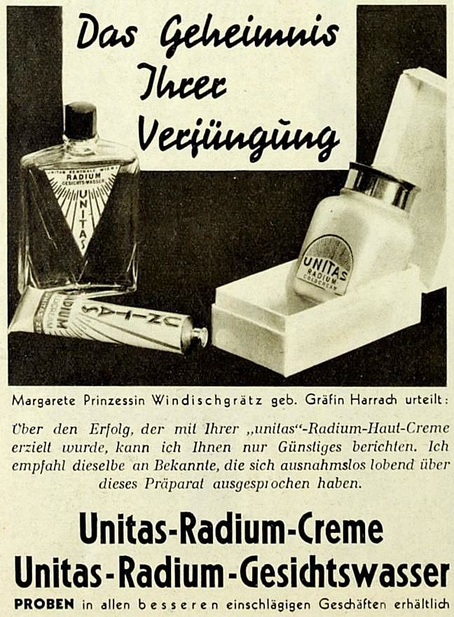 “Schmeckt neuartig” – jaaaaa, das glaub ich. 😉 So wurde es fleissig produziert und konsumiert das Alles, bis man nicht nur feststellte, dass Radium, Thorium und Co. krank macht, sondern töten kann.