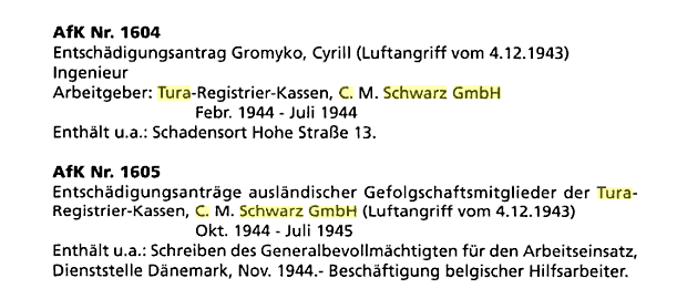 – 1949: Tura Registrier-Kassen, C. M. Schwarz G.m.b.H., Leipzig, Hohe Straße 9-13;