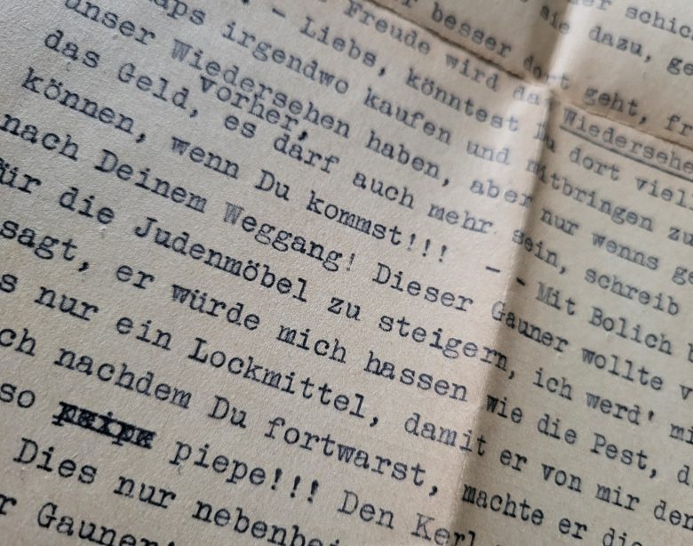Hatte man einen Bezugsschein für Möbel, so wie es die Briefeschreiberin erwähnte, dann konnte man billig allerlei bekommen, von den ermordeten oder vertriebenen Familien. Bevor es so bürokratisch, so deutsch geregelt wurde, plünderten die „guten Deutschen“ auch gern mal ihre ehemaligen Nachbar*innen aus.